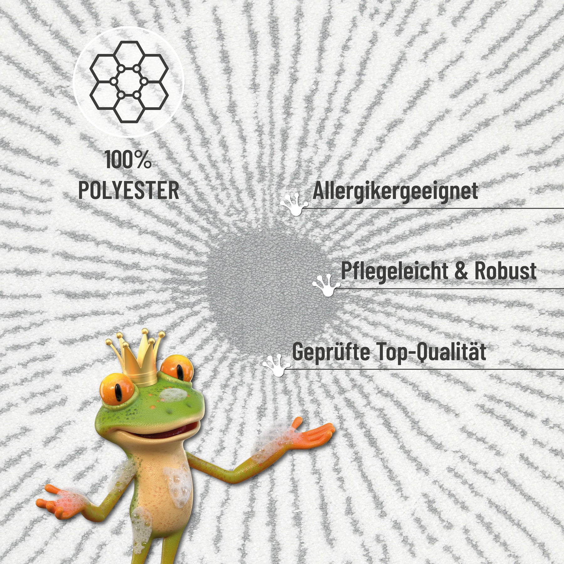 Stylisch, weich, pflegeleicht – das ist JASBEER. Der moderne Badteppich mit strahlenförmigem Linien-Design bringt Dynamik in dein Badezimmer, ohne dabei aufdringlich zu wirken. Die hochwertigen Materialien fühlen sich nicht nur gut an, sie halten auch ordentlich was aus. Die rutschhemmende Unterseite sorgt für festen Halt – auch auf glatten Fliesen. Geeignet für Fußbodenheizung und natürlich maschinenwaschbar bei 30°. OEKO-TEX® STANDARD 100 zertifiziert – damit nur Gutes an deine Haut kommt. JASBEER vereint Design und Funktion wie kaum ein anderer. Für alle, die’s stylisch UND praktisch mögen.