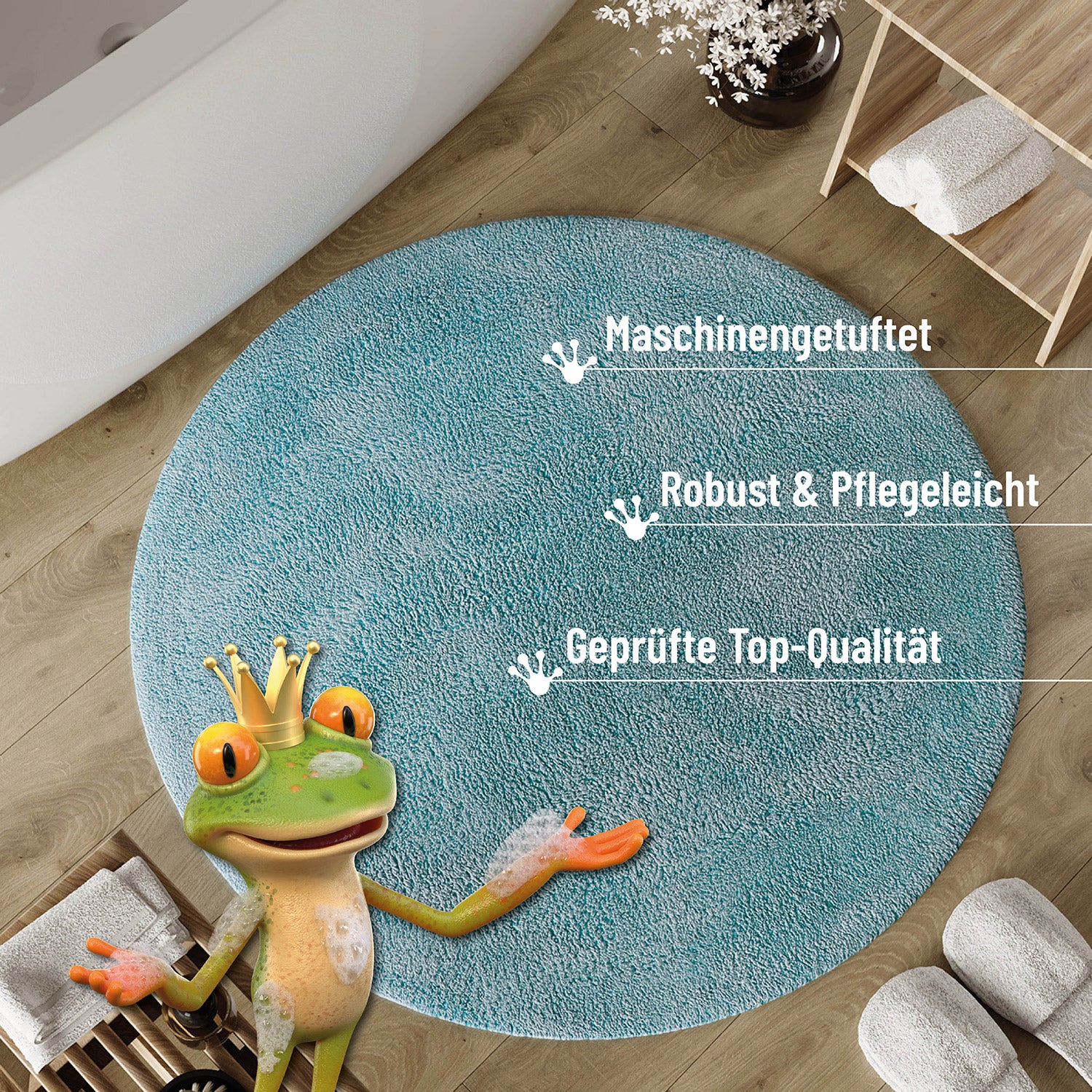 Erik ist der Badteppich, der nicht viel braucht, um viel zu können. Sein klares, puristisches Design macht ihn zum Allrounder in jedem Badezimmer – weich unter den Füßen, sicher auf dem Boden und angenehm in der Pflege. Gefertigt aus 100 % Baumwolle bietet Erik mit seiner 20 mm Florhöhe ein wunderbar flauschiges Gefühl – ideal nach dem Duschen oder einfach für warme Barfußmomente. Die Rückseite ist rutschhemmend beschichtet und sorgt für stabilen Halt, selbst auf glatten Fliesen. Dank OEKO-TEX® STANDARD 100® kannst du dich auf geprüfte Qualität verlassen – hautfreundlich, durchdacht und gemacht für dein tägliches Wohlgefühl. Erik ist schlicht – aber einfach richtig gut.