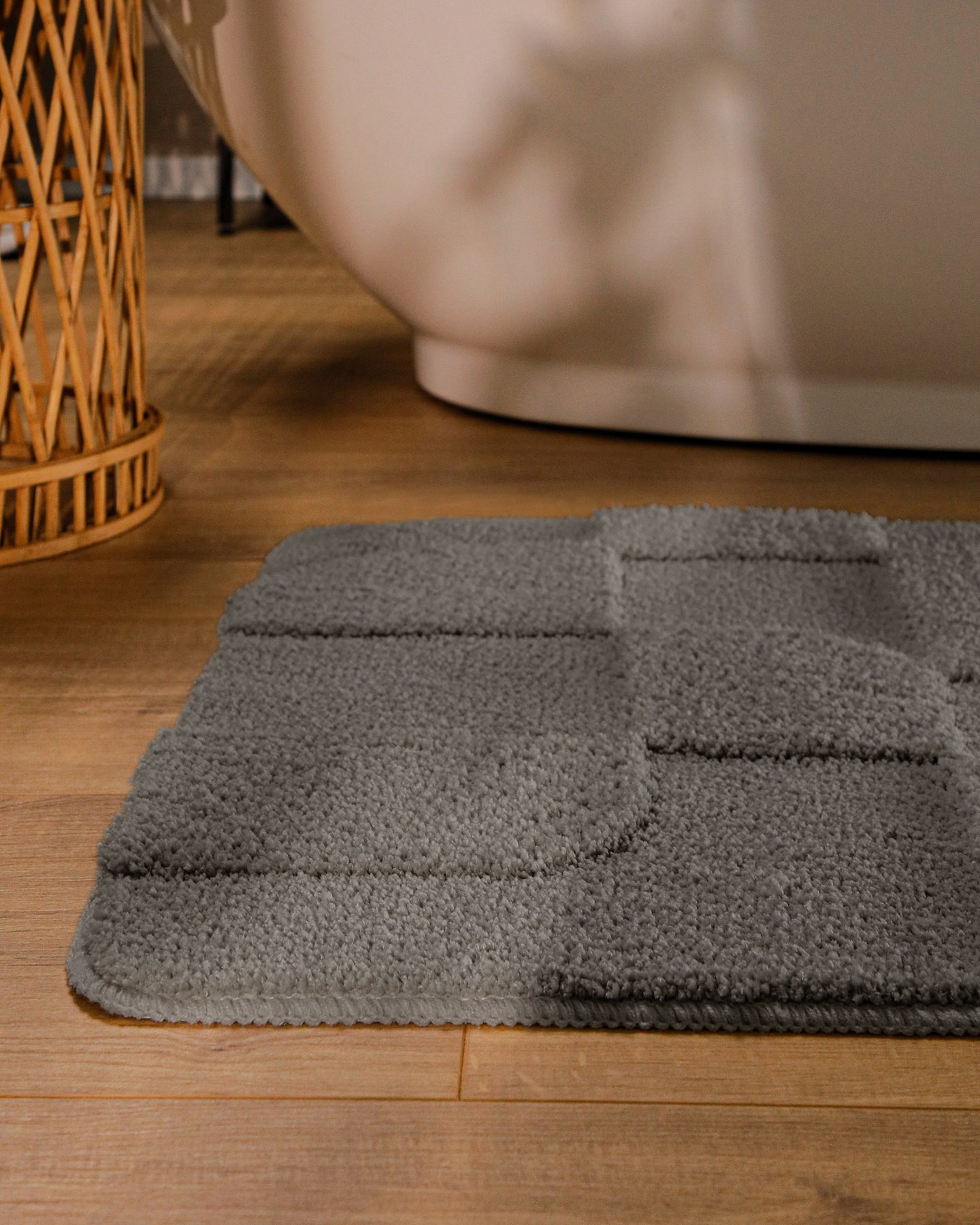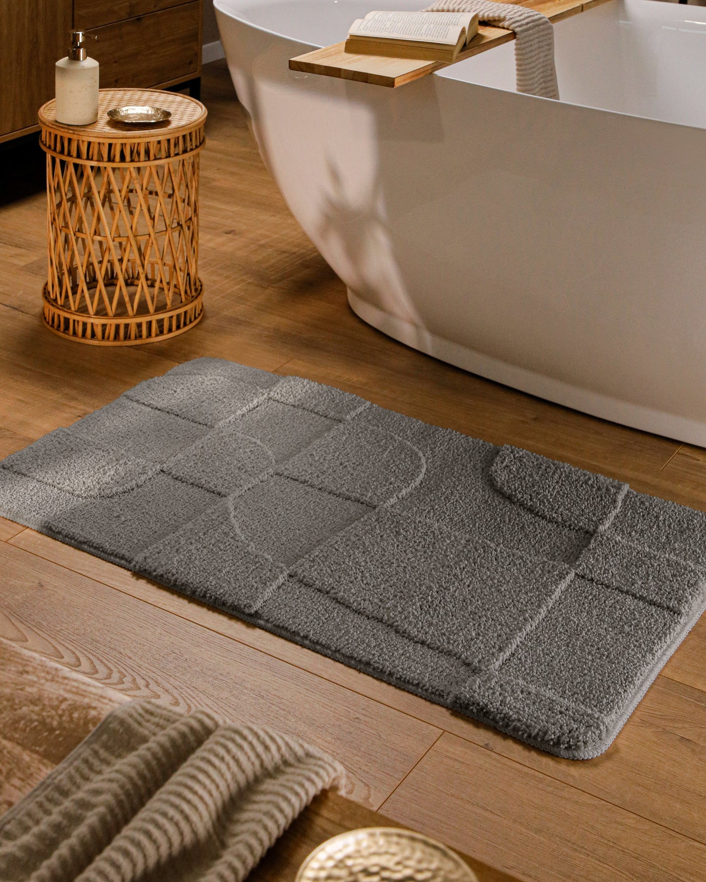 Davie macht das Bad sofort wohnlicher. Weich nach dem Duschen, rutschhemmend auf Fliesen, waschbar bei 30 °C. Die Hoch-Tief-Struktur sieht modern aus und bleibt angenehm ruhig. Pflege ist easy – nicht schleudern, kein Trockner.