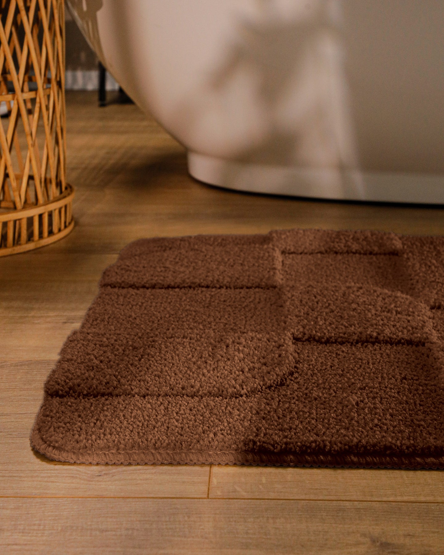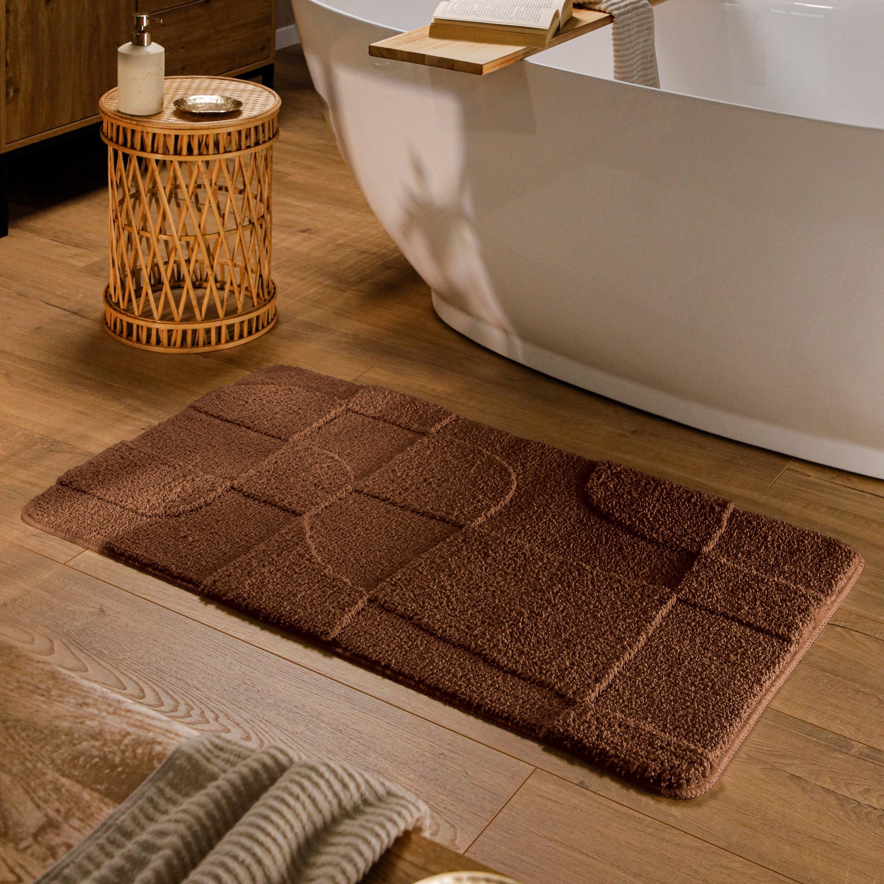 Davie macht das Bad sofort wohnlicher. Weich nach dem Duschen, rutschhemmend auf Fliesen, waschbar bei 30 °C. Die Hoch-Tief-Struktur sieht modern aus und bleibt angenehm ruhig. Pflege ist easy – nicht schleudern, kein Trockner.